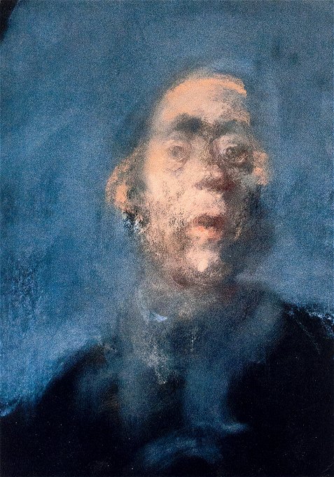 Autoportrait au fond gris bleu